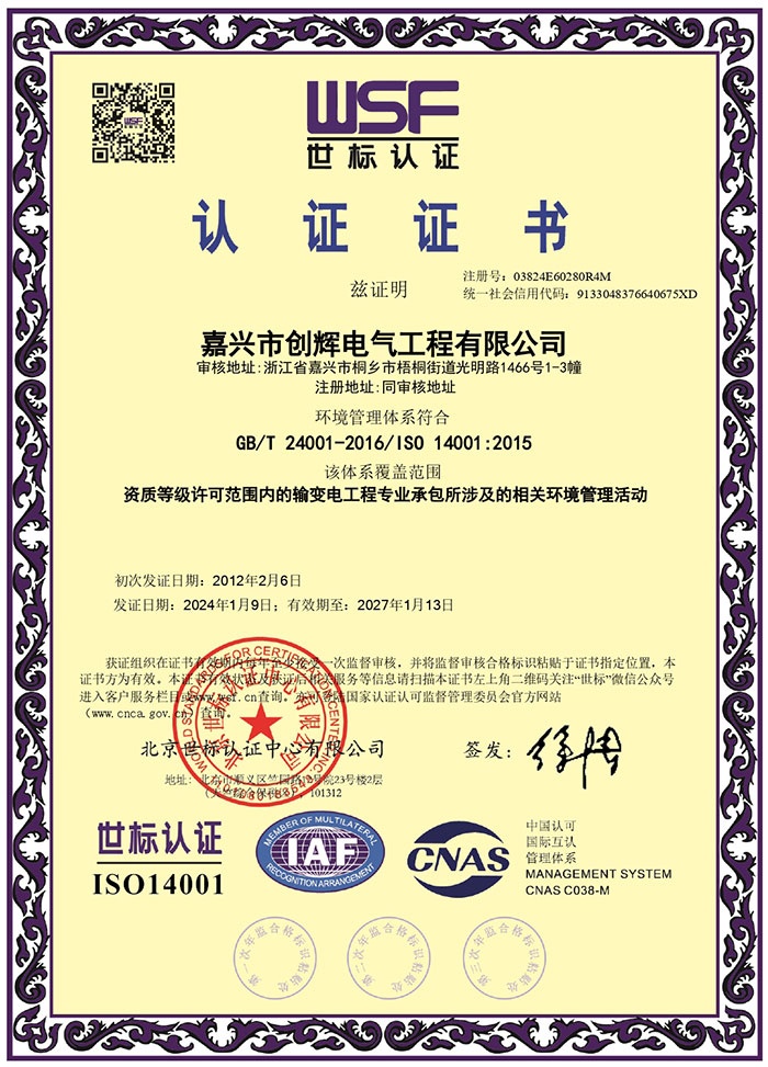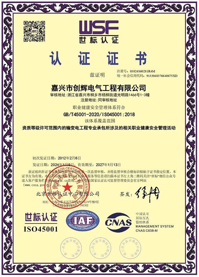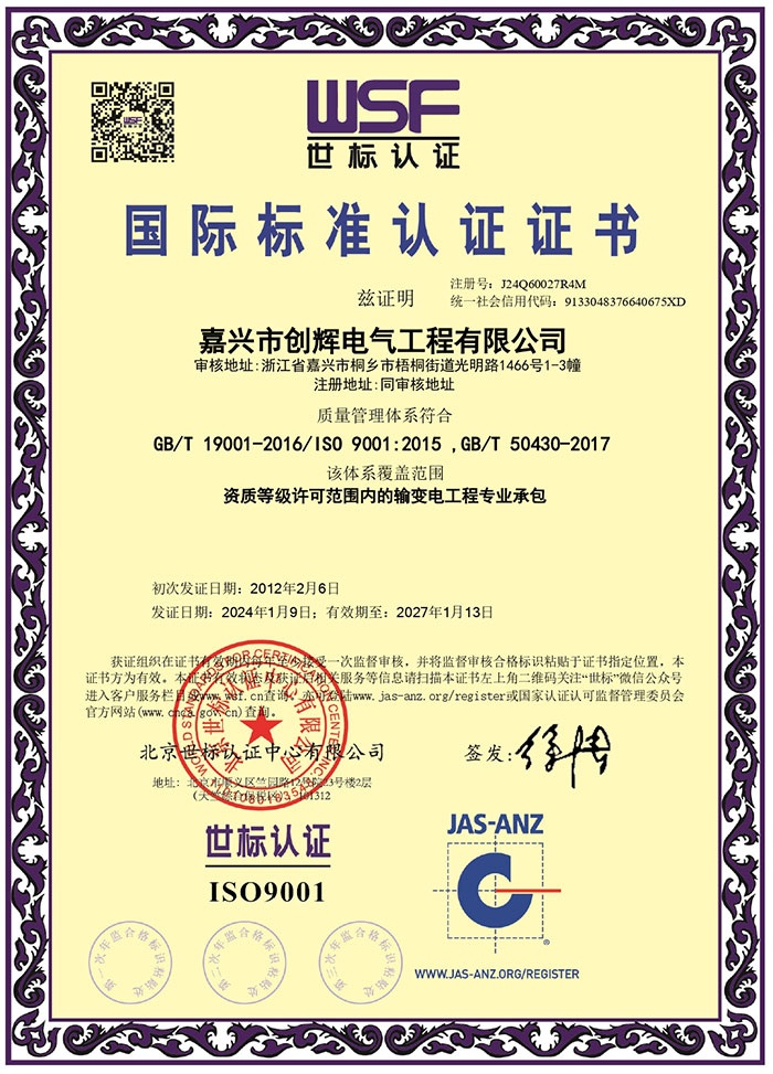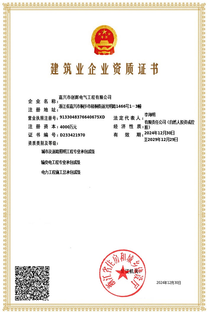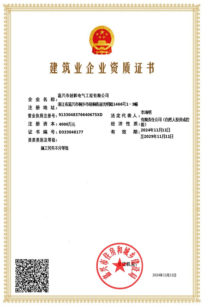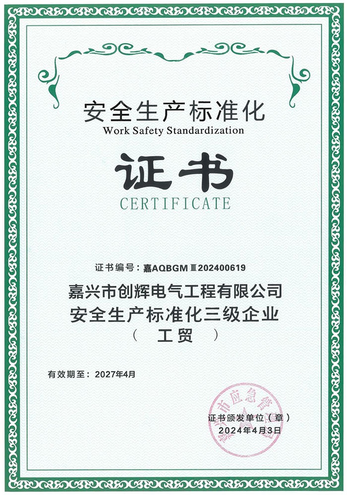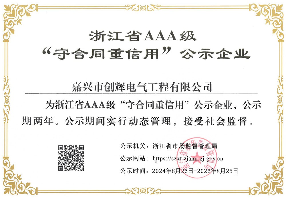 嘉興市創(chuàng)輝電氣工程有限公司,總部坐落于浙江桐鄉(xiāng)經(jīng)濟(jì)開(kāi)發(fā)區(qū),公司成立于2004年,是一家承接高、低壓輸變電工程施工安裝、維修的企業(yè)。公司下設(shè)人事行政部、預(yù)結(jié)算部、采購(gòu)部、財(cái)務(wù)部、營(yíng)銷部和工程部等,其中工程部根據(jù)具體作業(yè)內(nèi)容分設(shè):變電項(xiàng)目部(12個(gè)班組)、線路項(xiàng)目部(6個(gè)班組)。現(xiàn)有員工500余人,其中擁有一級(jí)建造師3名,二級(jí)建造師15名,高級(jí)工程師1名,工程師36名,助理工程師52名,高壓電工240余名。目前我公司已具備電力工程總承包貳級(jí)資質(zhì),輸變電工程專業(yè)承包貳級(jí)資質(zhì),城市及道路照明工程專業(yè)承包貳級(jí)資質(zhì),承裝(修、試)電力設(shè)施許可二級(jí)資質(zhì),建筑施工安全生產(chǎn)許可,是浙江省高新技術(shù)企業(yè)、省AAA級(jí)“守合同重信用”企業(yè)。
